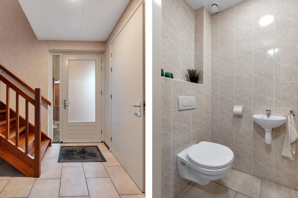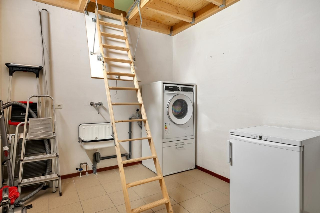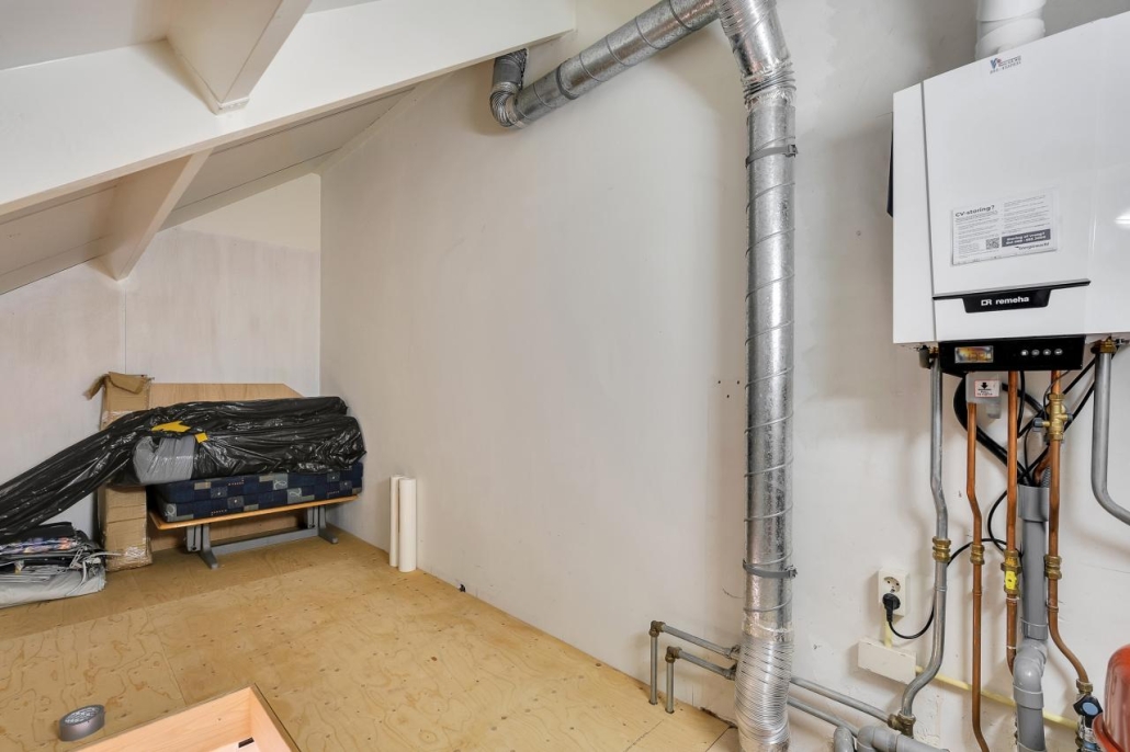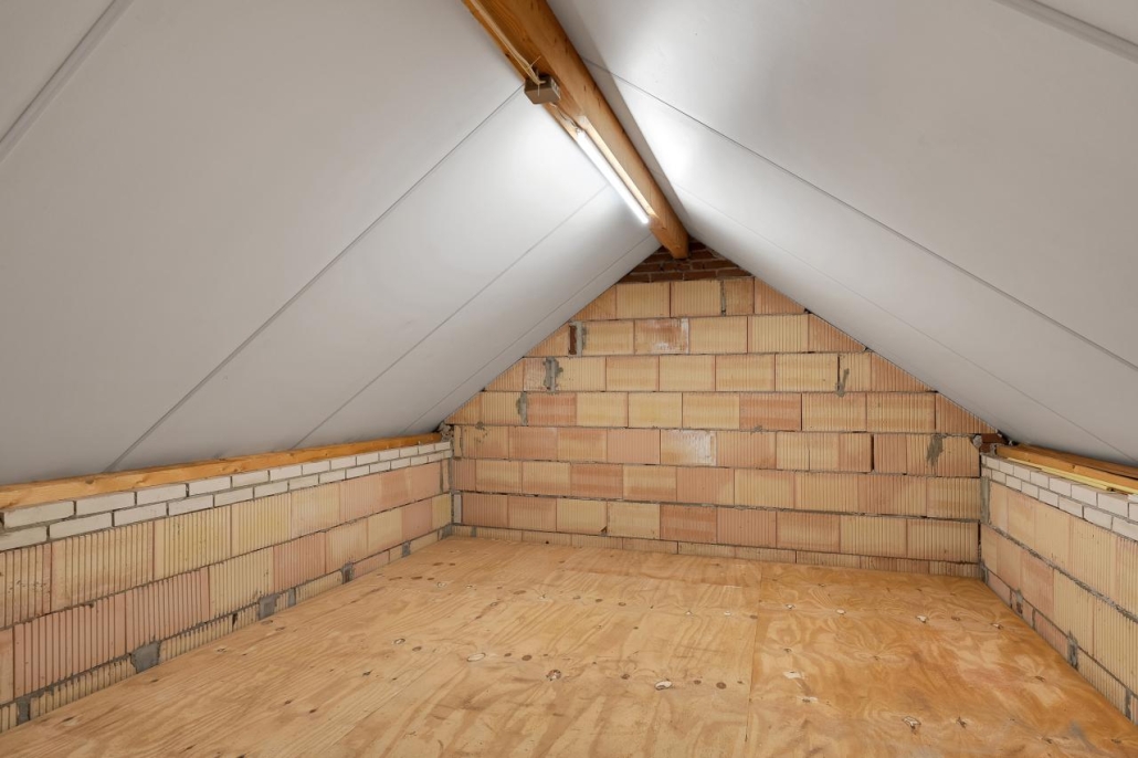 De zolder is bereikbaar via een mogelijkheid van een vlizotrap en biedt praktische extra bergruimte. Hier is de voorbereiding al gedaan, zodat er gemakkelijk een vaste trap naar zolder gemaakt kan worden.