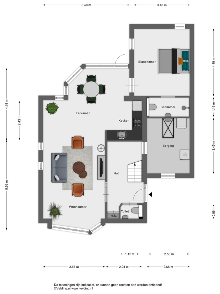 Aan deze objectinformatie kunnen geen rechten worden ontleend en deze informatie kan niet als aanbieding of offerte worden beschouwd. Indien u een aanbieding wenst, kan de makelaar deze, na goedkeuring door de opdrachtgever, op basis van specifieke gegevens verzorgen.