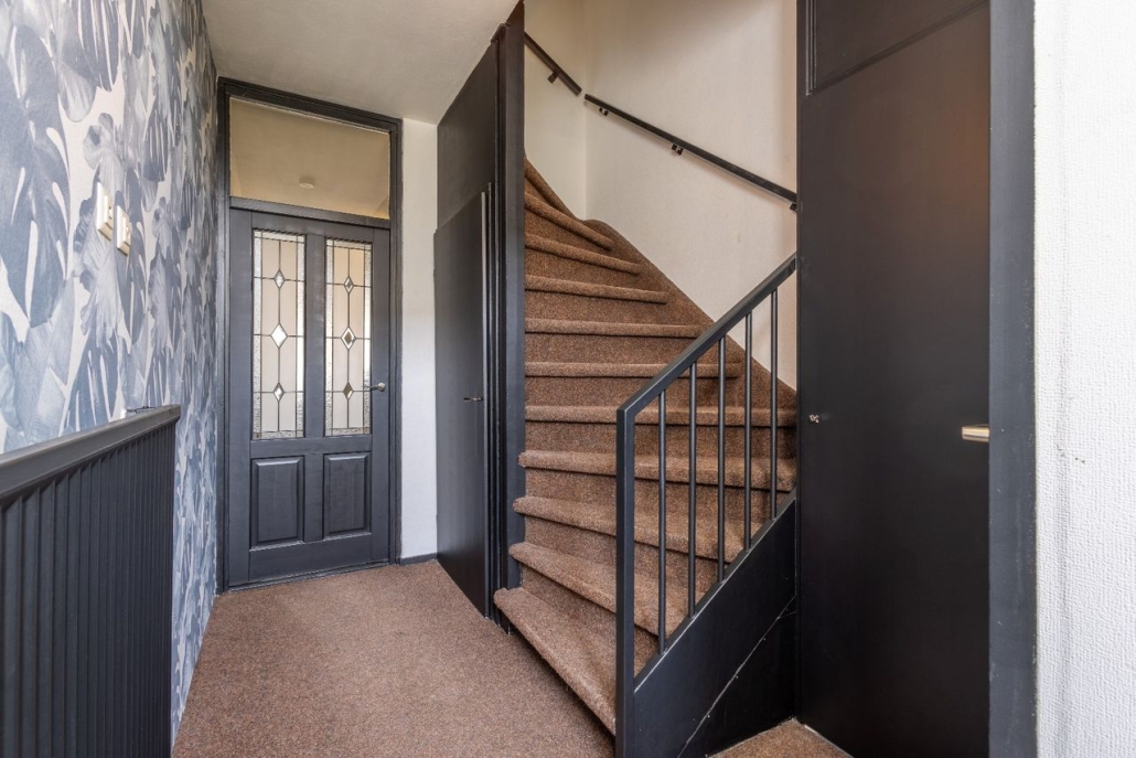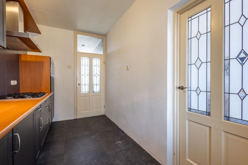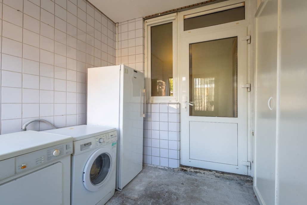 Begane grond: entrée/hal voorzien van meterkast, provisiekast, moderne toiletruimte en trapopgang naar de 1e verdieping; gesloten keuken voorzien van rechte inbouwkeuken; lichte doorzonwoonkamer voorzien van suite-deuren; geïsoleerde bijkeuken met vaste kasten en achteringang.