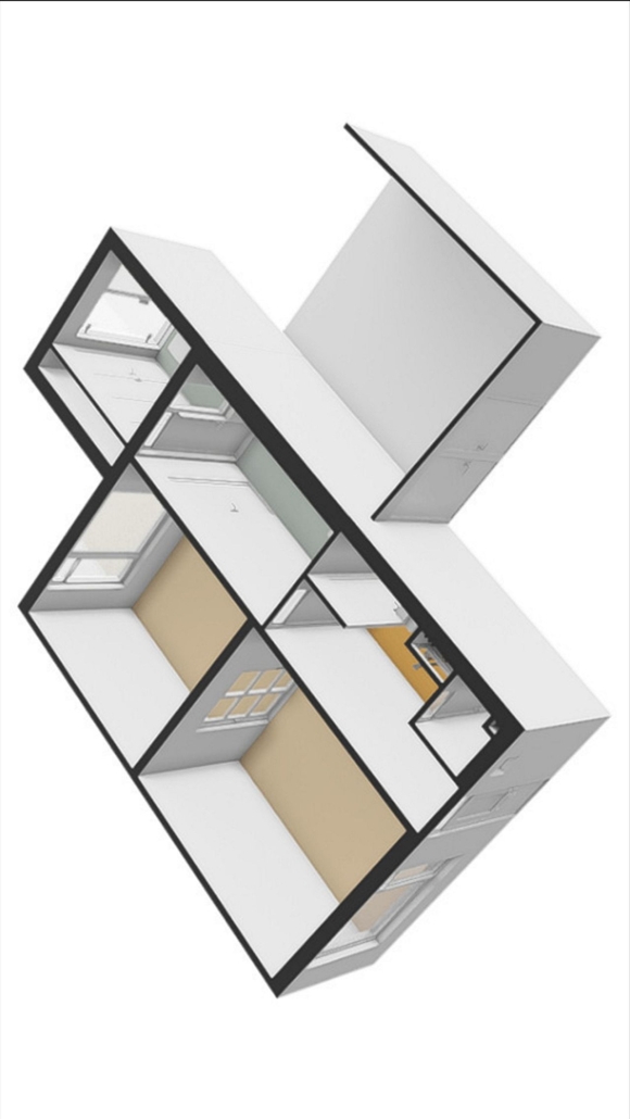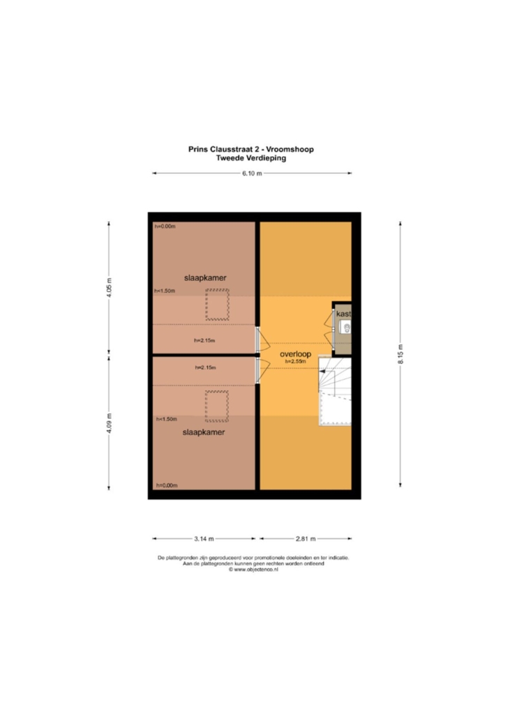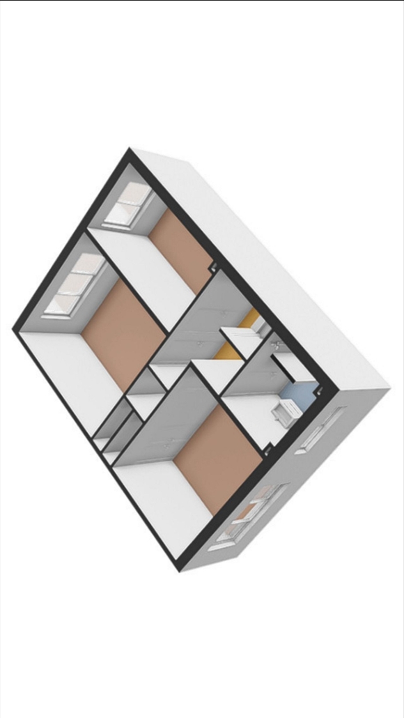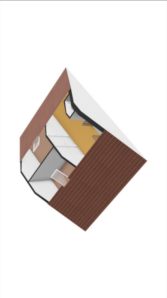 2e verdieping: overloop; 2 slaapkamers voorzien van tuimelramen.