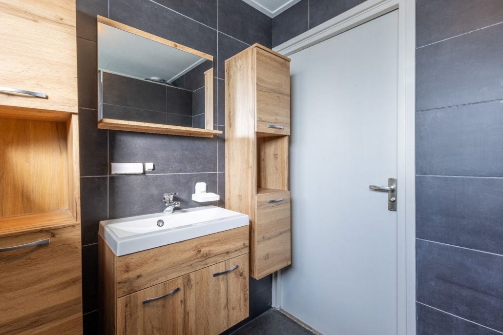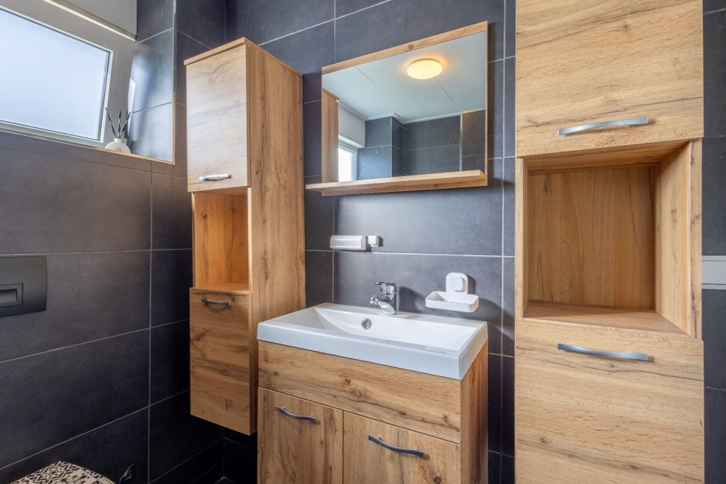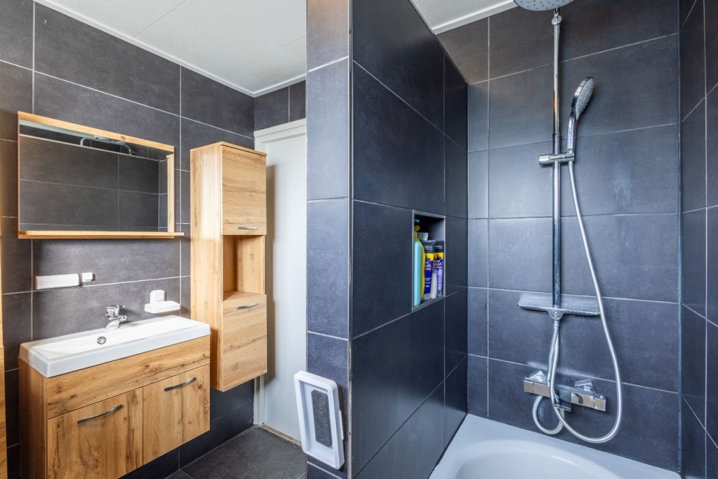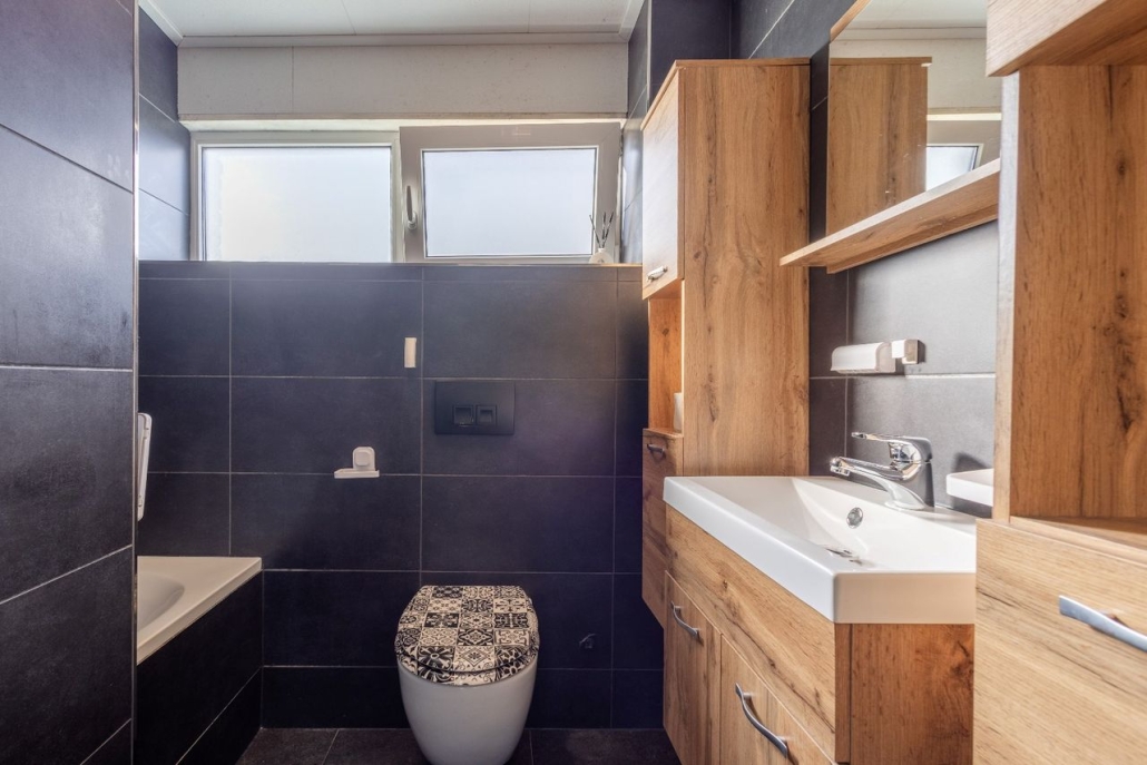 De moderne badkamer (2021) is voorzien van inloopdouche, ligbad, badkamermeubel en hangtoilet.