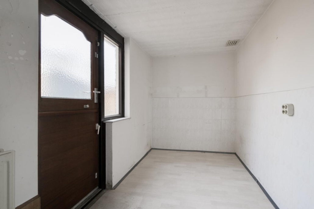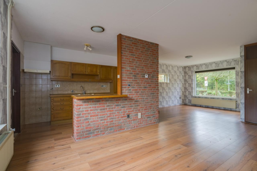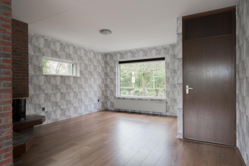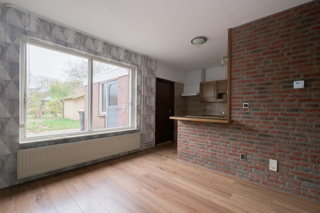 Begane grond: Entree; hal met meterkast en toilet met fonteintje. De Z-vormige woonkamer is voorzien van een open haard en biedt volop lichtinval. Aansluitend bevindt zich de halfopen keuken met een eenvoudige inrichting. Vanuit de keuken is er toegang tot de berging/bijkeuken met aansluitingen voor was-apparatuur. Vanuit de berging is er toegang tot de achtertuin.