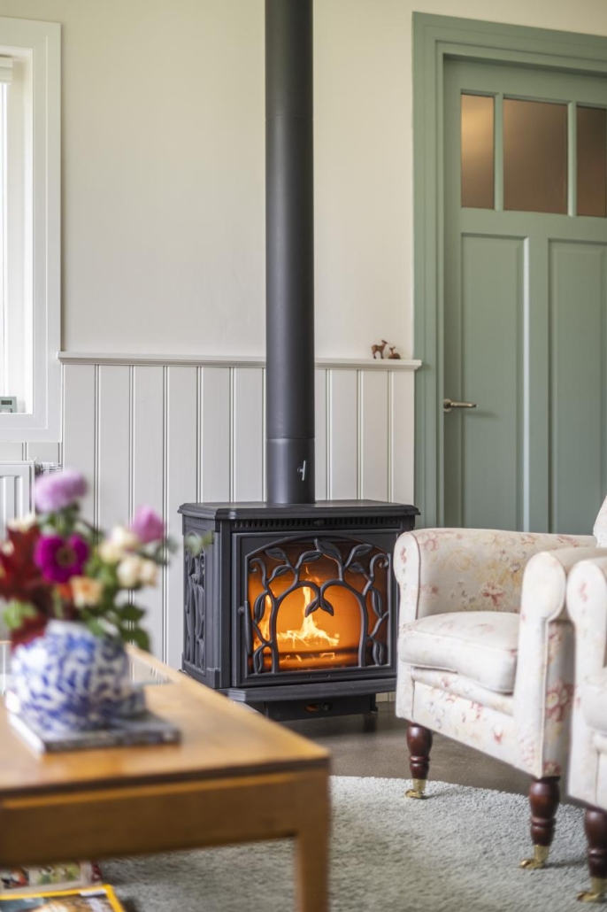 Achter de charmante gevel schuilt een zorgvuldig en hoogwaardig gerenoveerd interieur, waarin authentieke details zijn behouden en moeiteloos zijn gecombineerd met hedendaags comfort. De begane grond verwelkomt u met een sfeervolle hal, die toegang biedt tot twee zitkamers. Aan de voorzijde een knusse ruimte met houtkachel en grote raampartijen met uitzicht over het glooiende landschap. Aan de zijkant een tweede zitkamer met zicht op het omliggende groen.