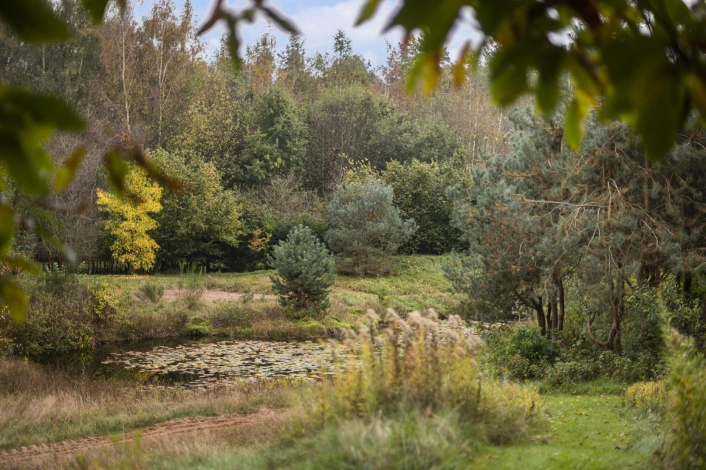 Het perceel is een levend kunstwerk. De fraai aangelegde tuin bestaat uit diverse hoogtes, weelderige borders, wandelpaden, een boomgaard met fruitbomen, een moestuin en meerdere terrassen. Een natuurlijke vijver vormt het hart van het terrein, een rustgevend middelpunt waar het heerlijk vertoeven is. Er is zelfs een charmant privéstrandje aangelegd. Elk element in deze tuin is met visie en liefde ontworpen.