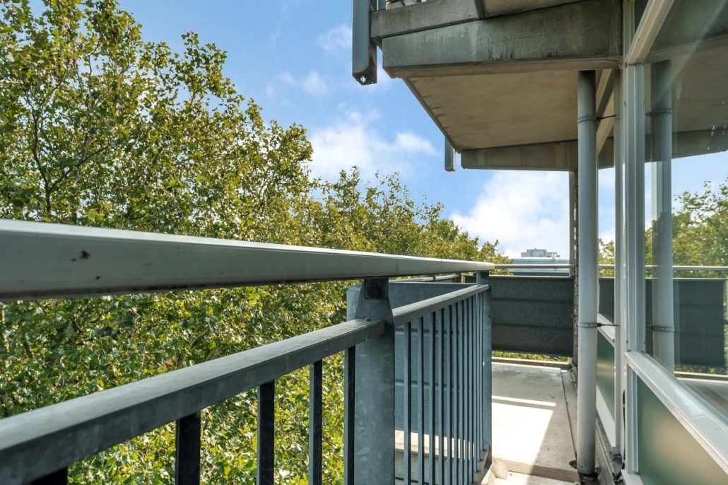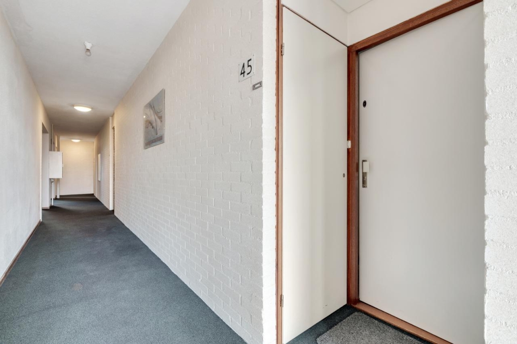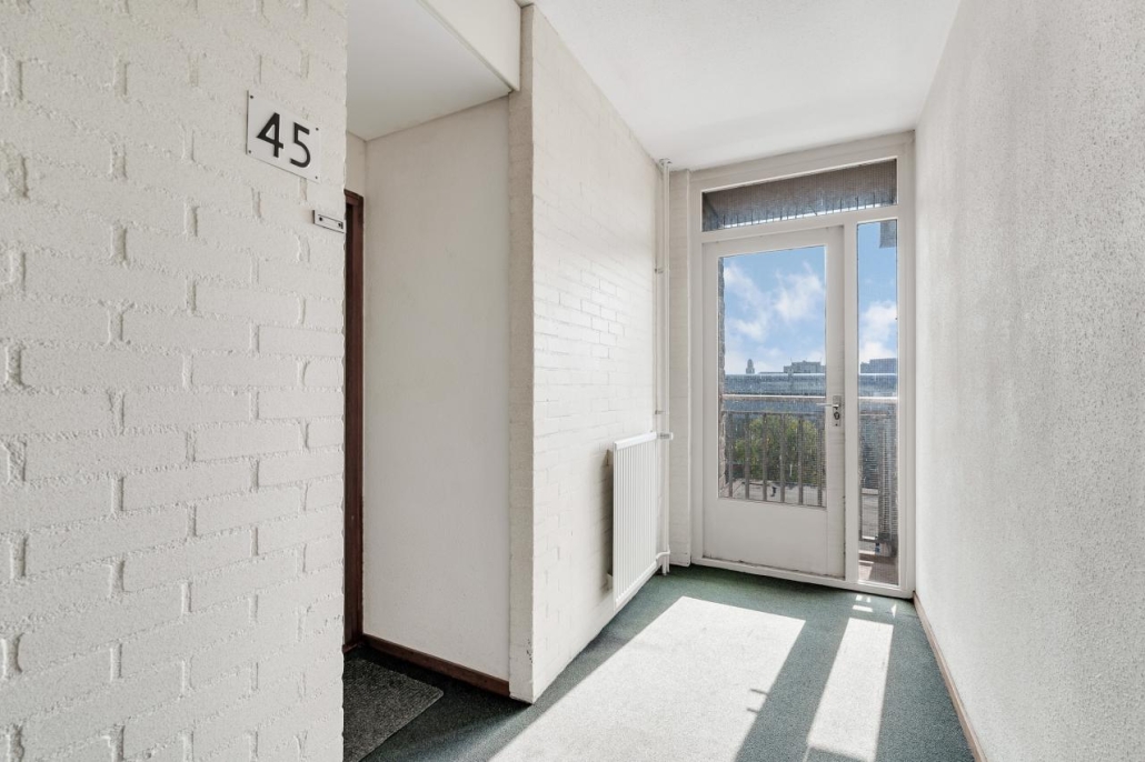 Wat erg prettig is, is dat het appartement op de hoek is gelegen. Dit geeft niet alleen erg veel daglicht, maar betekent ook dat het appartement aan het eind van de gang is gelegen. Hierdoor lopen er nooit mensen langs de voordeur.