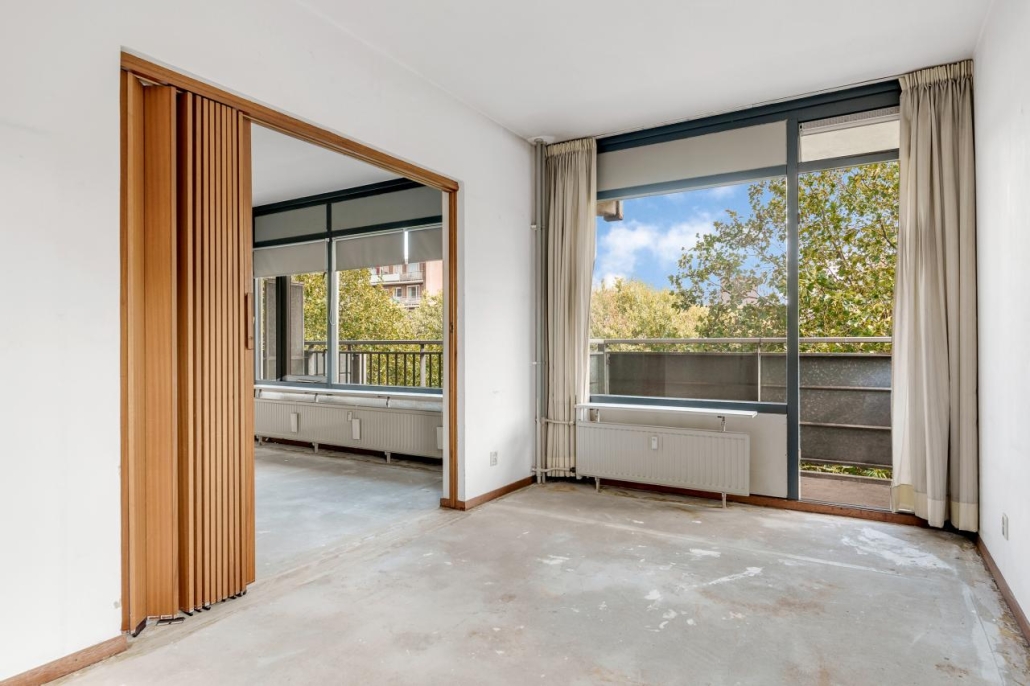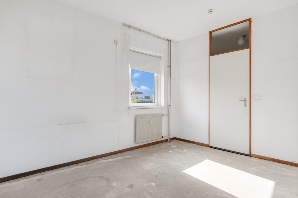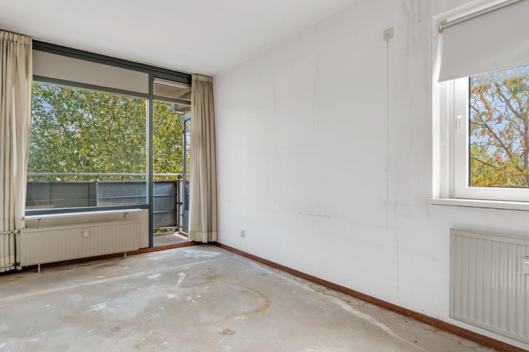 De slaapkamer en de woonkamer zijn van elkaar gescheiden door een vouwdeur. Natuurlijk is er een mogelijkheid om dit naar eigen wens in te vullen. De slaapkamer biedt voldoende ruimte voor een tweepersoonsbed en een kast. De badkamer is zowel vanuit de slaapkamer evenals de hal te bereiken. Tot slot geeft de slaapkamer toegang tot het ruime balkon aan de voorzijde van het appartement.