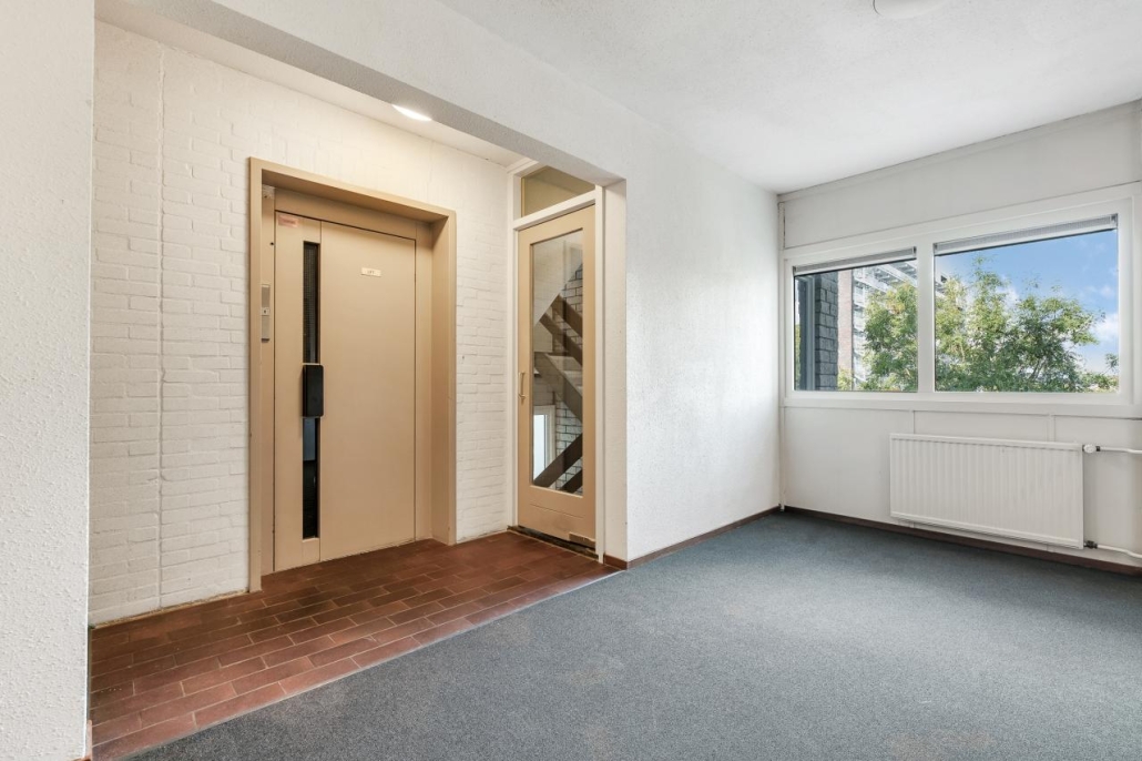 Centrale hal met bij binnenkomst de postbussen, je hoeft dus nooit door de regen om de post uit de bus te halen! Middels de beveiligde entree zijn de lift en het trappenhuis bereikbaar. De lift brengt je vanaf de centrale ingang naar de vijfde verdieping, waar het appartement gelegen is.