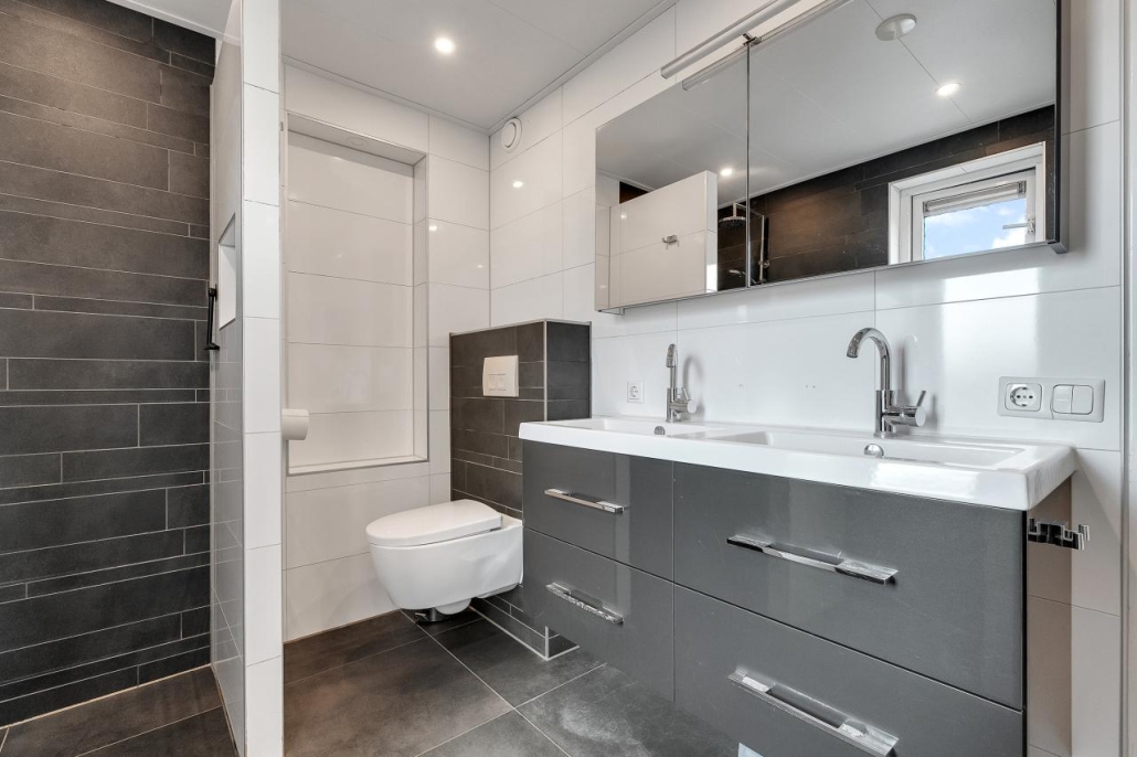 Op de eerste verdieping bevinden zich vier ruime slaapkamers en een nette badkamer, uitgerust met een dubbele douche, wastafelmeubel en toilet. De tweede verdieping beschikt over een vijfde slaapkamer met wastafel en volop bergruimte.