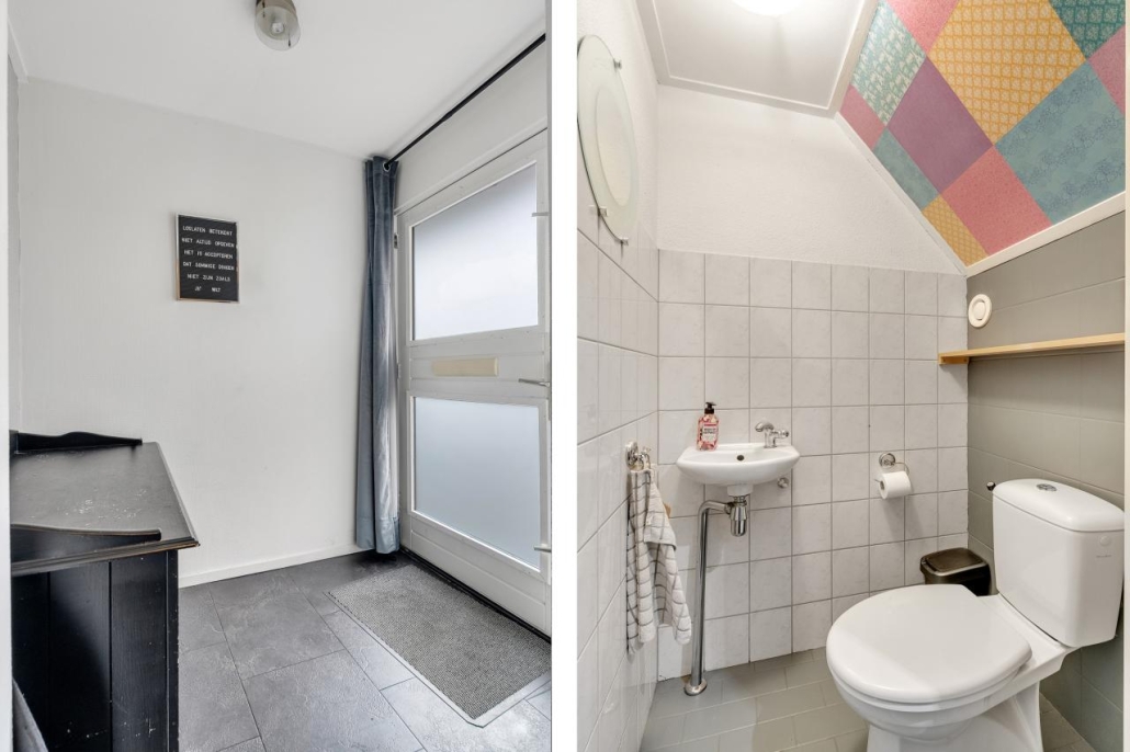 De achtertuin beschikt over een overkapping, een praktische fietsenschuur en een achterom via de zijkant van de woning. De voortuin en oprit bieden bovendien voldoende parkeergelegenheid voor meerdere auto's op eigen terrein.