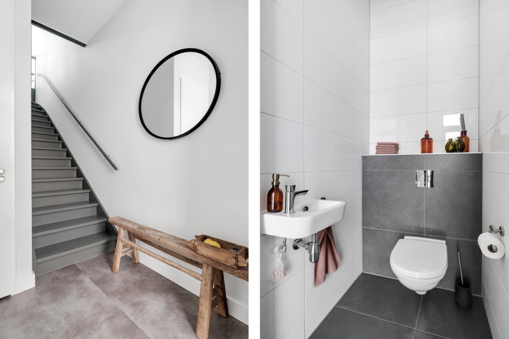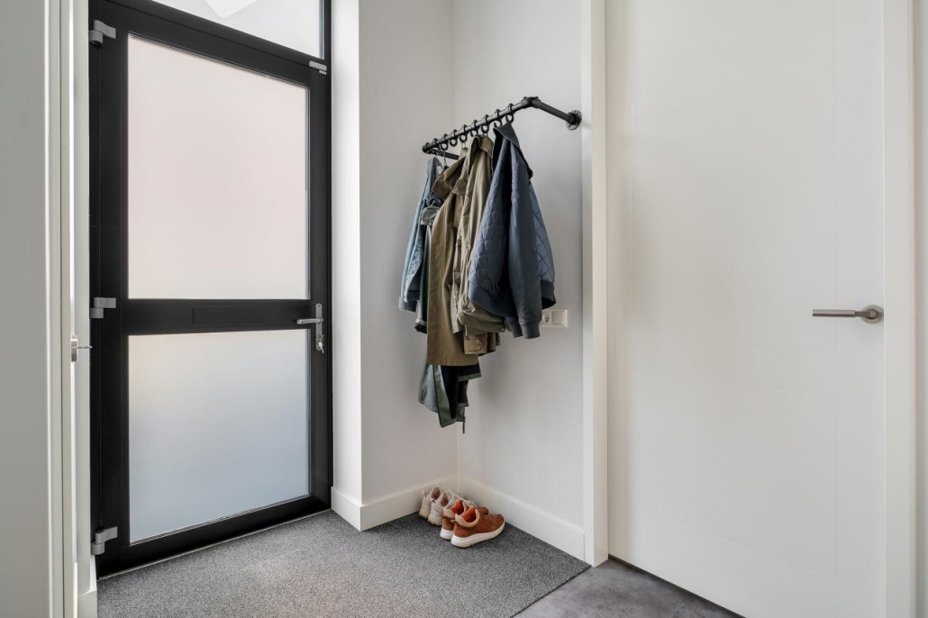 Bij binnenkomst via de entree word je verwelkomd in een brede, lichte hal met een garderobe, toilet, meterkast en trapopgang. De hal geeft toegang tot de ruime, open woonkeuken. De hoge plafonds en grote raampartijen maken de ruimte extra groot en licht. De op maat ontworpen keuken aan de achterzijde is uitgerust met een riant kookeiland en voorzien van inbouwapparatuur. Via dubbele openslaande deuren stap je direct de fraai aangelegde achtertuin in, waar binnen en buiten naadloos in elkaar overlopen.