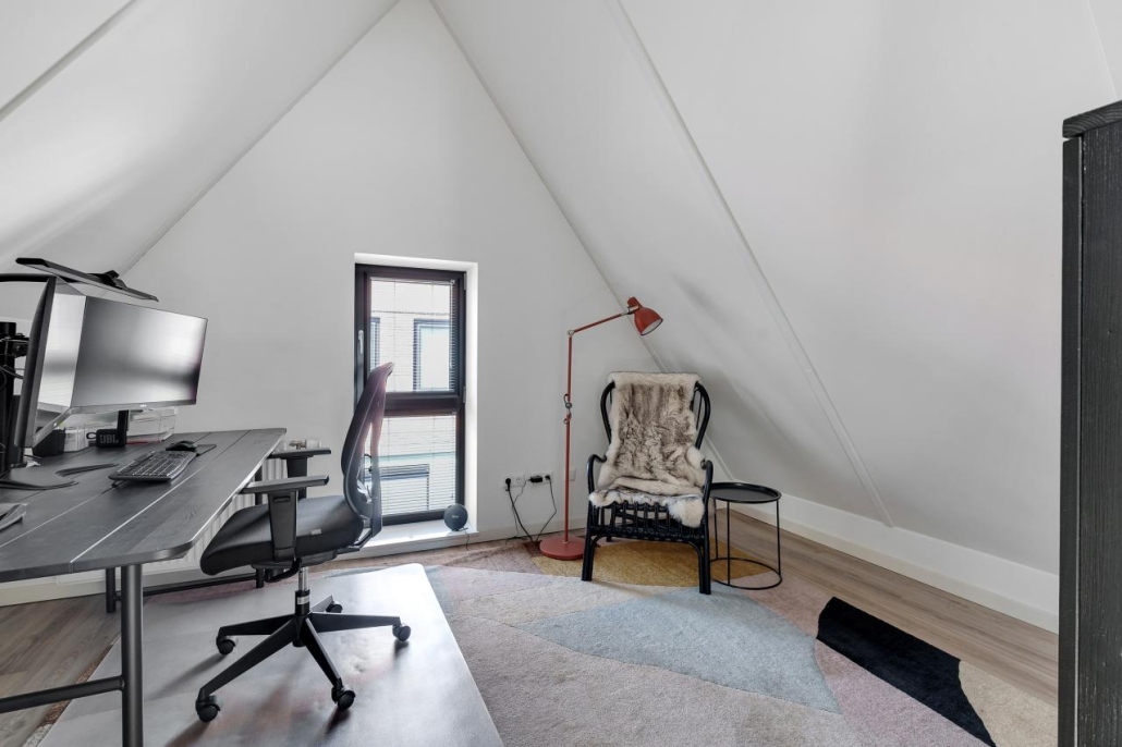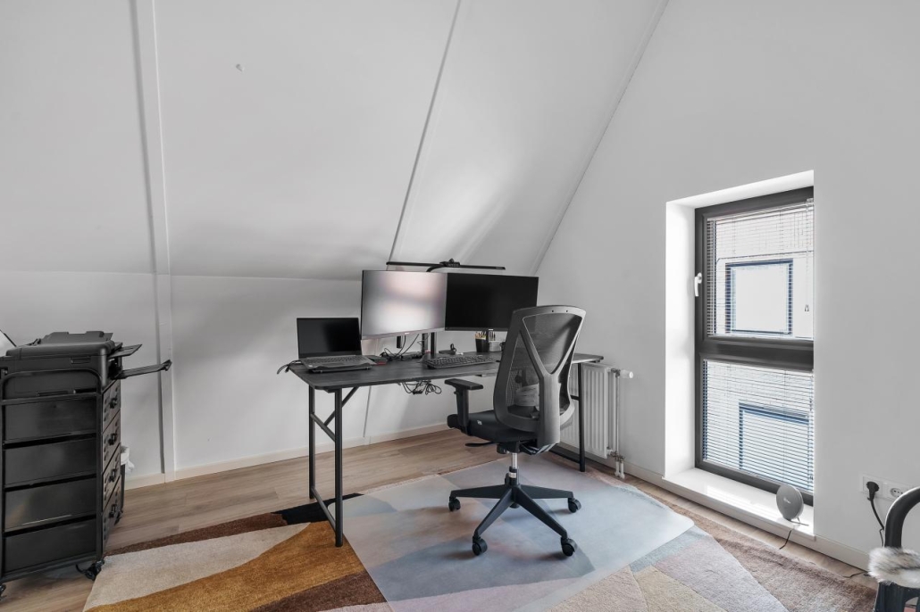 De derde verdieping biedt nog twee ruime kamers, ideaal als slaap-, werk- of hobbyruimte. Tevens bevindt zich hier een praktische technische ruimte met witgoedaansluitingen.