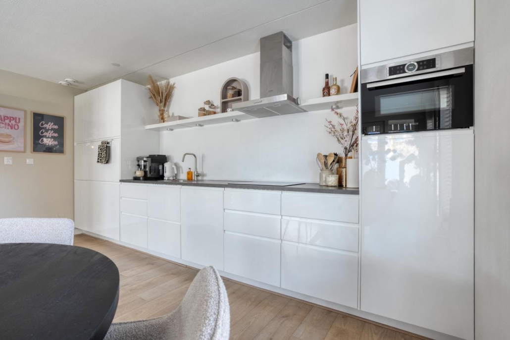 En die keuken... dat is een absolute blikvanger! Uitgevoerd in een moderne, greeploze hoogglans opstelling en voorzien van alle gemakken. Denk aan hoogwaardige inbouwapparatuur, waaronder een inductiekookplaat met strakke afzuigkap en een combi-oven. Het strakke werkblad en de vele lades maken dit tot een droomplek voor de kookliefhebber.
