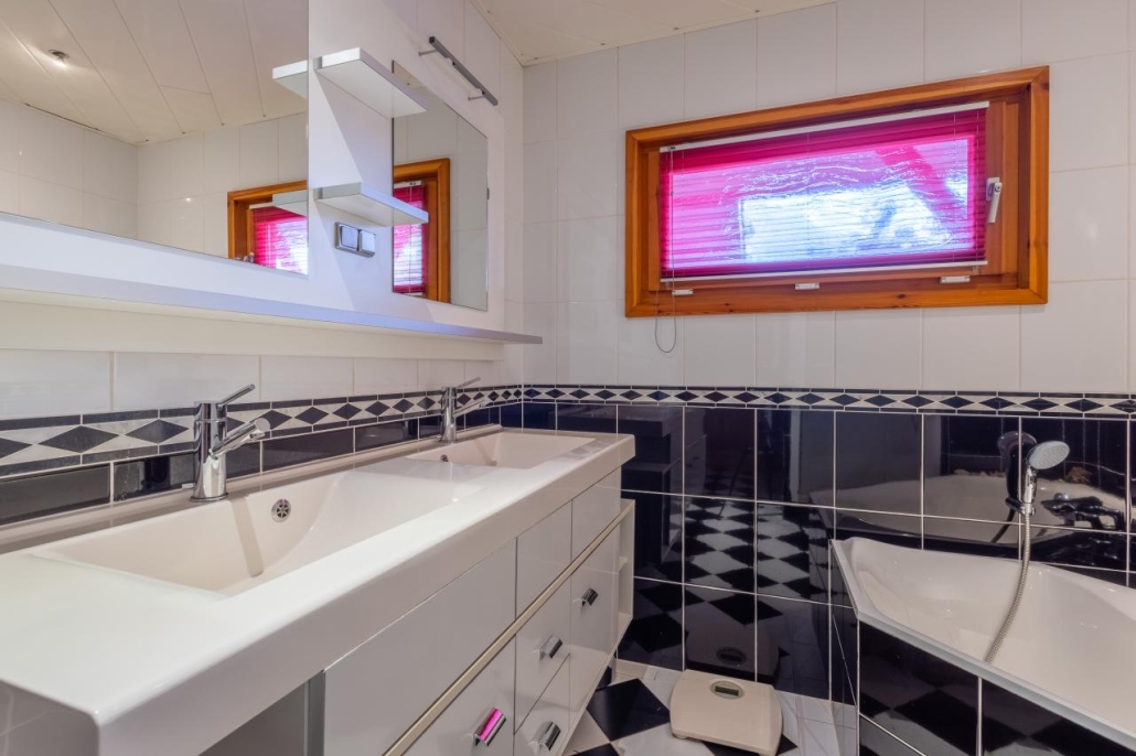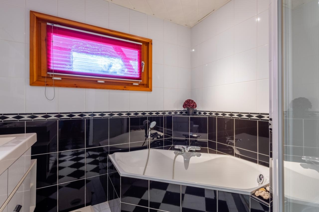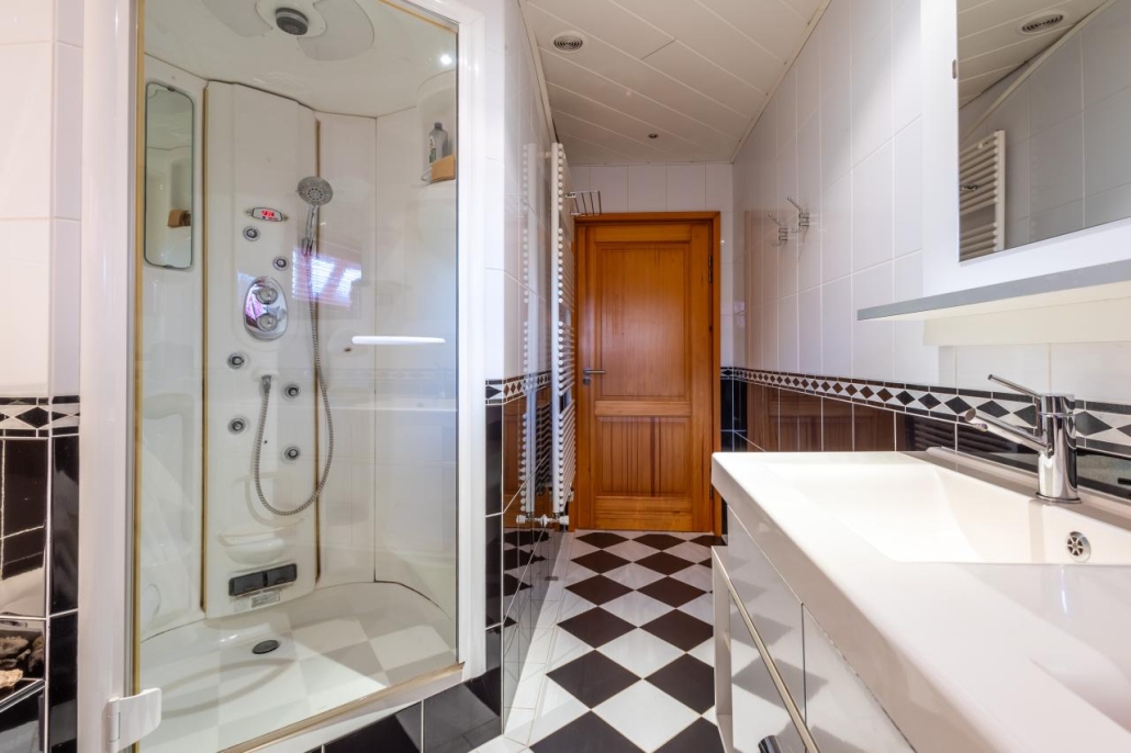 Via de gang zijn vier slaapkamers bereikbaar, elk met een praktische indeling. De twee badkamers zijn voorzien van een inloopdouche en dubbele wastafel; de hoofdbadkamer beschikt daarnaast over een ligbad en een stoom/douchecabine.