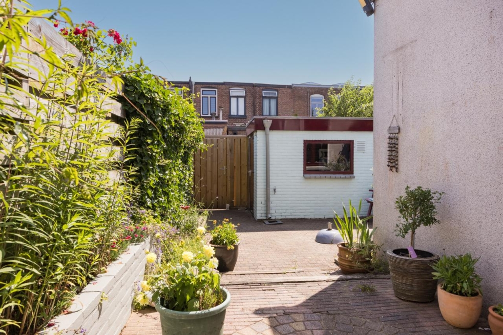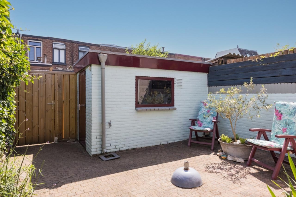 De besloten stadstuin ligt heerlijk op het zuiden, waardoor u de hele dag van de zon kunt genieten. Achterin de tuin staat een royale vrijstaande stenen berging met elektra, perfect voor fietsen of gereedschap. De tuin beschikt bovendien over een praktische achterom.