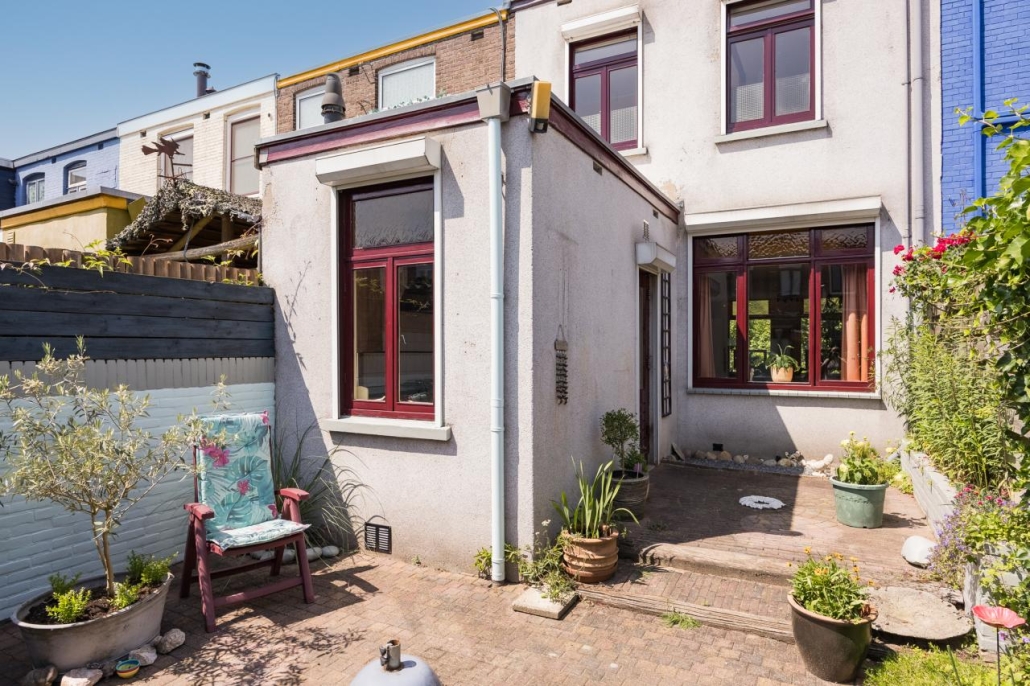 Karakteristieke uitgebouwde tussenwoning met zonnige stadstuin.