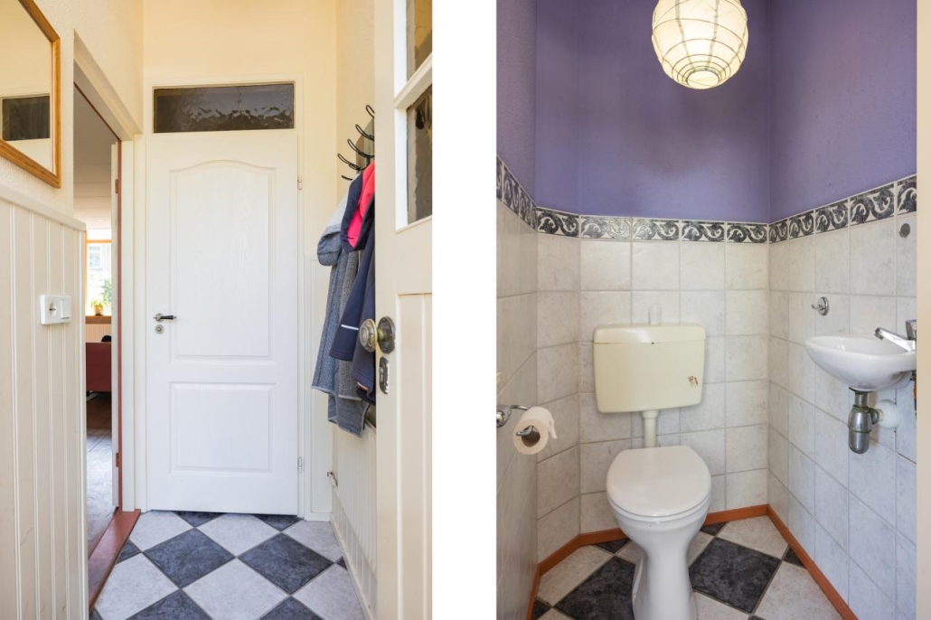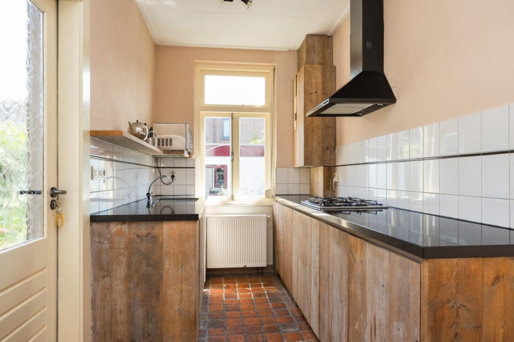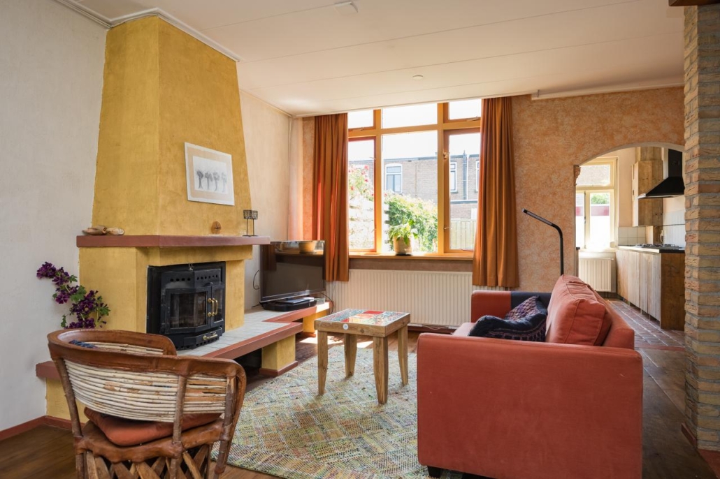 Via de entree komt u in de hal met toiletruimte, voorzien van een toilet en fonteintje. De ruime en lichte woonkamer heeft een grenenvloer en een voorzethaard. Vanuit de woonkamer is er toegang tot de royale kelder van circa 15 m², ideaal als provisie- of wijnkelder. De halfopen keuken in dubbele lengte-opstelling is uitgevoerd met een Estrikken vloer en voorzien van een 4-pits gaskookplaat, afzuigkap en koelkast. Vanuit de keuken bereikt u direct de zonnige tuin.