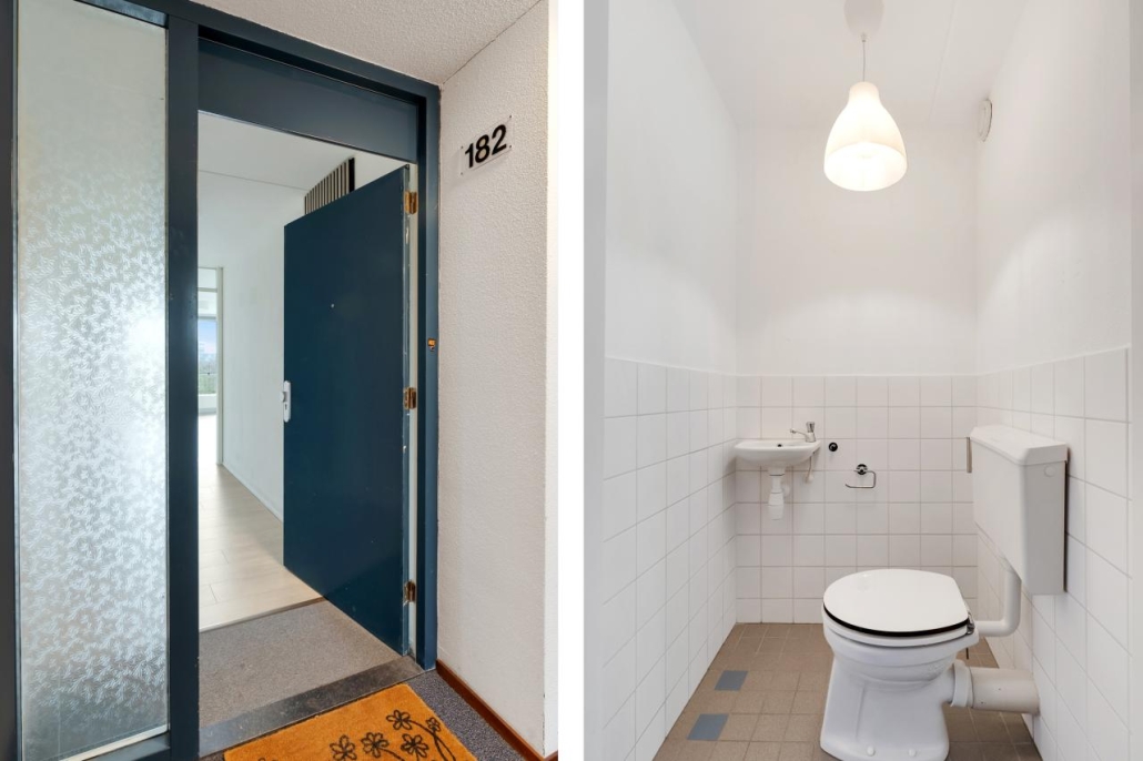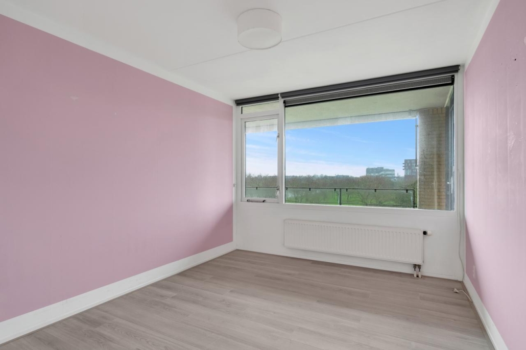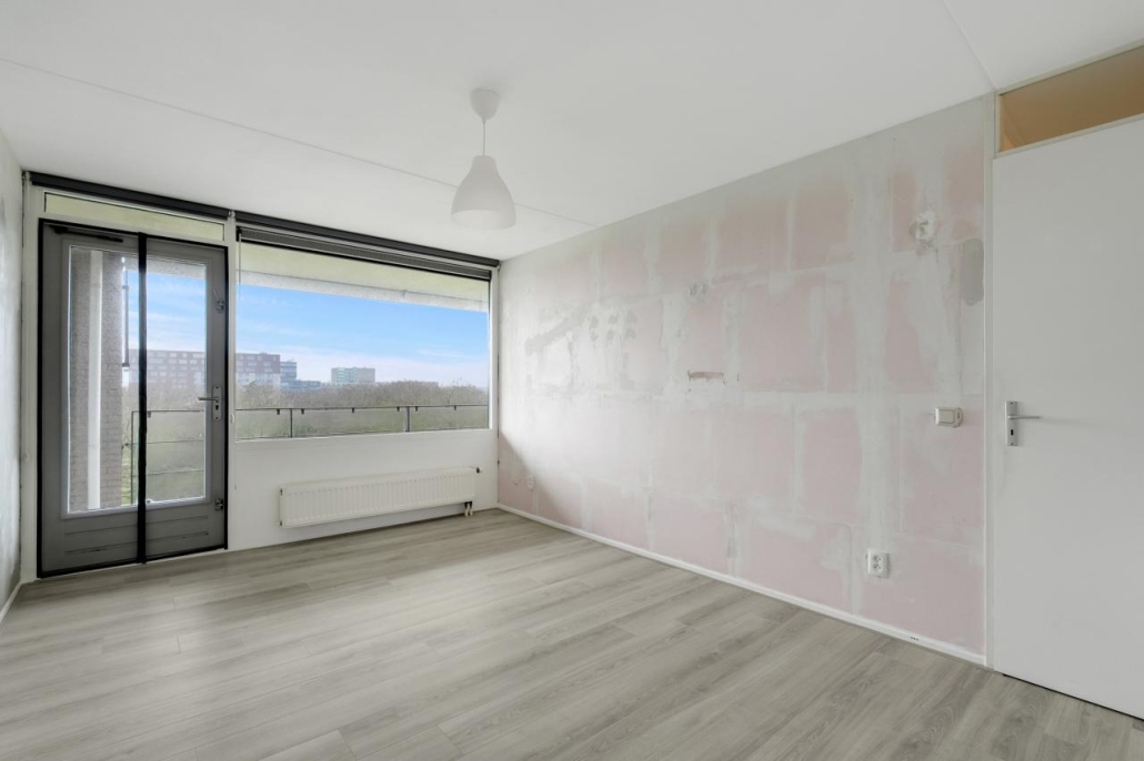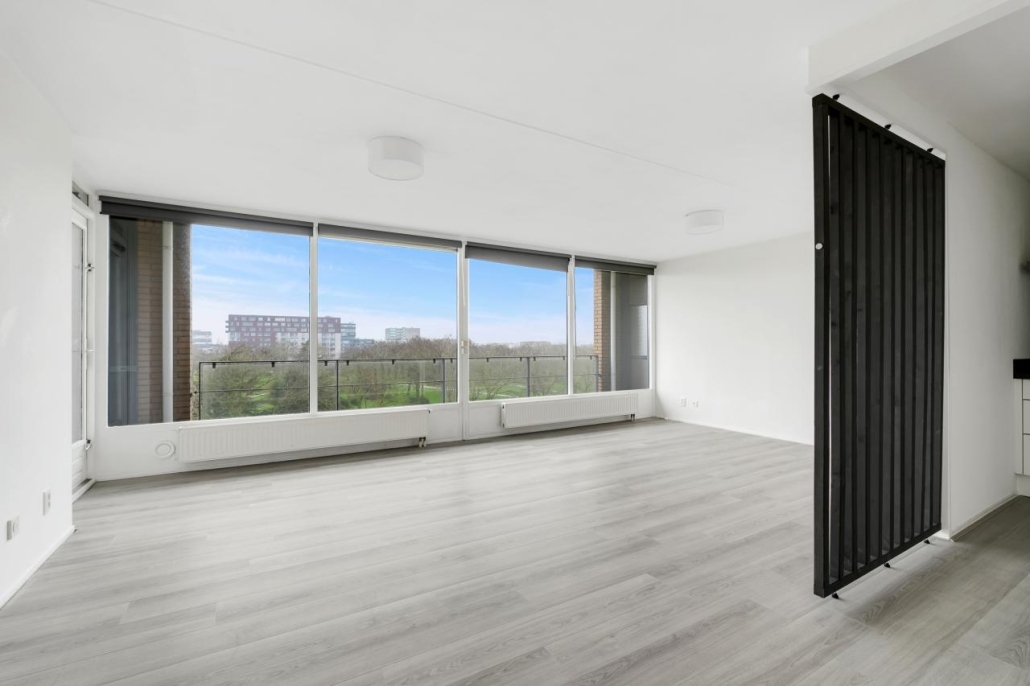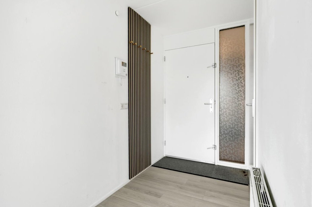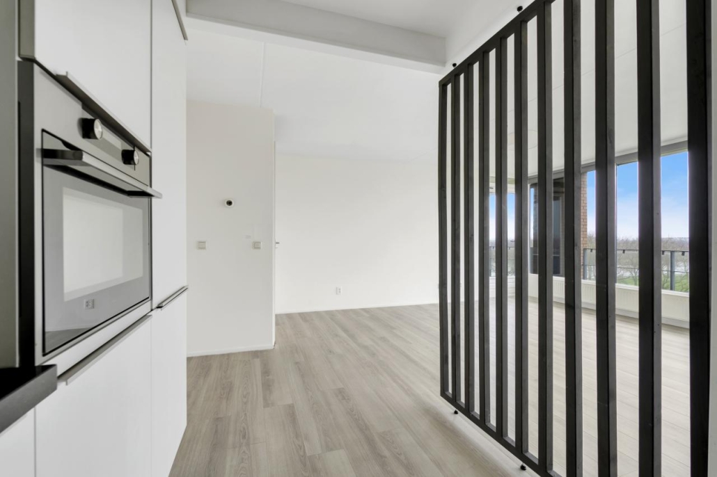 Bij binnenkomst van het appartement komt u in de hal, vanuit hier zijn alle vertrekken van het appartement toegankelijk. De ruime woonkamer biedt veel natuurlijk licht door de grote raampartijen. Vanuit de woonkamer heeft u toegang tot het ruime balkon, dat gelegen is op het westen. Dit maakt het de perfecte plek om te genieten van de middag- en avondzon.