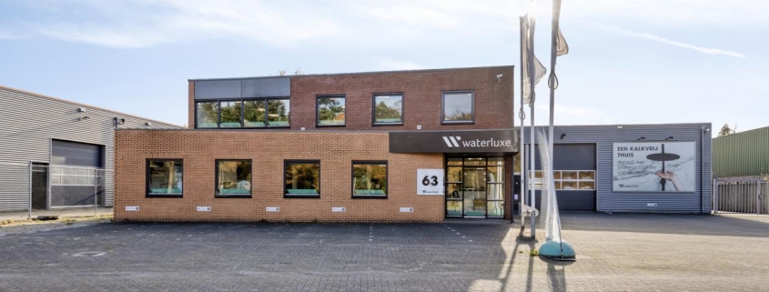 Wegens verhuizing van Waterluxe komt op zichtlocatie op het bedrijventerrein Marssteden gelegen modern bedrijfsgebouw te huur met ruim verhard buitenterrein.